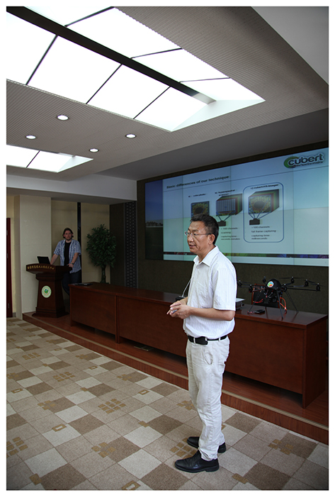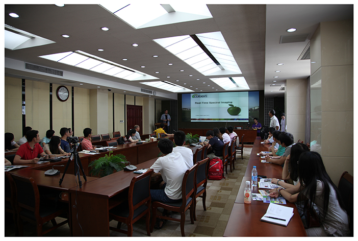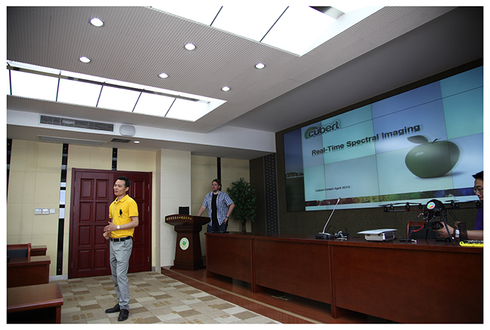 2014年6月12日中午,德中天地南京分公司總經理邀請Cubert GmbH公司CEO Michels博士到南京農業大學做UHD185框幅式UAVmini高光譜攝像儀技術報告會。
