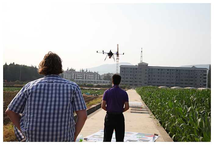 本次實驗由我公司自主研發的蜘蛛雀DW01八旋翼無人機搭載UHD185高光譜攝像儀,在江蘇省農業科學院實驗基地進行現場實驗數據采集。高光譜數據采集過程中,總經理與Cubert Gmbh公司CEO Michels博士為到場參觀人員詳細講解了高光譜數據獲取的實際操作流程,并著重講解了數據獲取的結果、精度等。