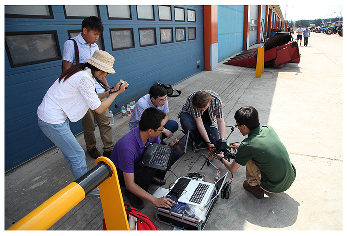 2014年6月11日中午,我公司組織到訪客戶及昨日參會人員參觀學習高光譜數據采集實驗。本次實驗由我公司自主研發的蜘蛛雀DW01八旋翼無人機搭載UHD185高光譜攝像儀,在北京市國家精準農業研究示范基地進行現場實驗數據采集。高光譜數據采集過程中,總經理與Cubert Gmbh公司CEO Michels博士為到場參觀人員詳細講解了高光譜數據獲取的實際操作流程,并著重講解了數據獲取的結果、精度等。