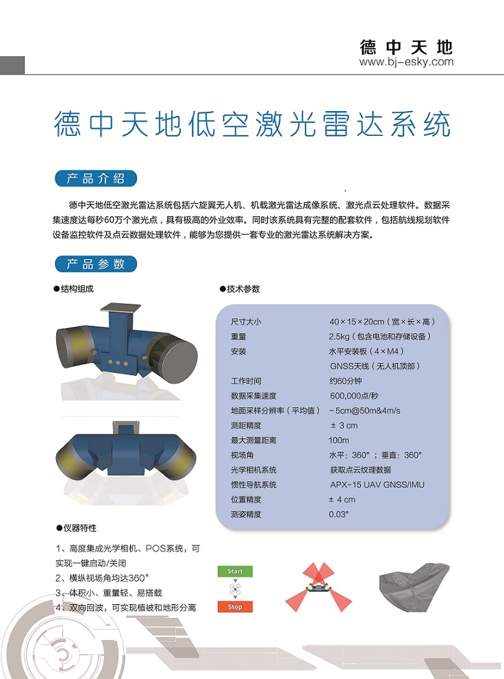技術(shù)特點(diǎn): 雙激光頭,提高測(cè)量速度;高度集成了光學(xué)相機(jī)、POS系統(tǒng),可實(shí)現(xiàn)一鍵啟動(dòng),操作方便;橫縱視場(chǎng)角均達(dá)360°。